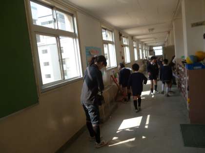 24日(月)PTA給食・保健委員会のよびかけで、校内の大掃除をしました。児童も次年度へ教室を美しくゆずるためにがんばりました。卒業した6年生も手伝いにきてくれました。PTAの方々は、児童の手の届かないところ、ふだんあまりできないところを中心に掃除をしていただきました。本当にありがとうございました。