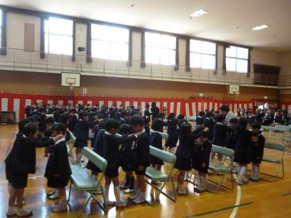 7日、真新しい標準服に身をつつまれ、新入生37名が入学しました。2年生が植えたチューリップが廊下に並べられている中、入学式に臨みました。校長先生から、一人ずつ名前を読み上げられました。2年生から、チューリップのたねをプレゼントしてもらい、歌や合奏でお祝いをしてもらいました。これから6年間、楽しいこと、苦しいこと、がんばりぬくことを経験しながら、たくましく成長していくことでしょう。入学おめでとう。