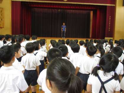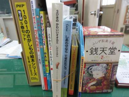 児童朝会では、表彰と校長先生のお話そして本の寄贈について図書主任の先生からお話がありました。楽しい本をたくさんいただきました。図書室でぜひ読んでみましょう。