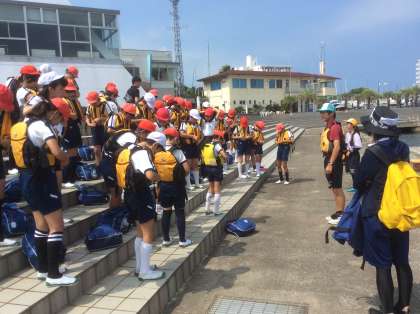 体操服に着替えて、ライフジャケットを着けました。