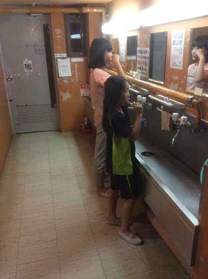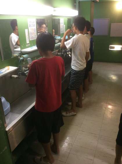 就寝前の歯磨き。