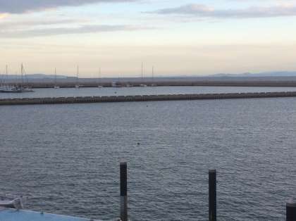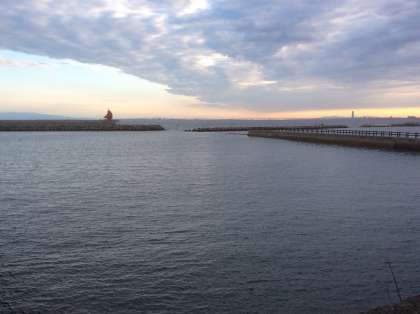 北…左に淡路島、真ん中に関西空港、関空の右の奥に淡路大橋が見えます。右に遠く生駒山も見えます。