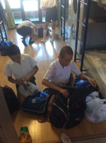 帰りの用意をしています。