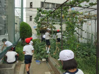 トマトやピーマン、ナスやサツマイモが育つ栄養満点の学習園は、虫たちの楽園です!