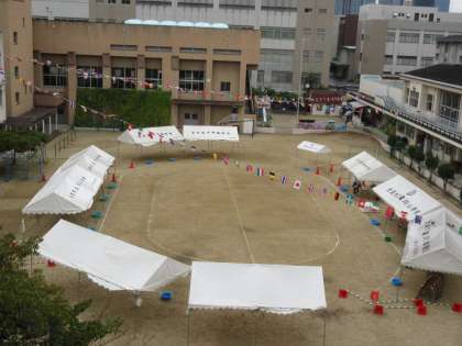 運動場は、幼稚園の運動会の準備をしています。幼稚園の運動会は日曜日になりました。良いお天気になりますように。