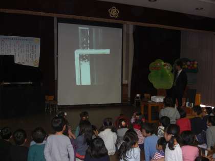 園長先生からは、水の中に雪を降らせる実験を見せてもらいました。