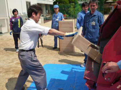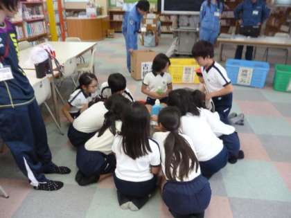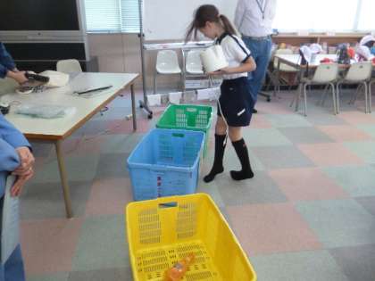 3時間目は、図書室でごみの分別のお話を聞き、実際に分別を体験しました。2時間、あっという間に過ぎました。実際に目の前で見るパッカー車の威力はすごいもので、大きな家具を一瞬で粉々にしてしまいます。ごみ回収はとても危険を伴うということ、安全に回収するために、収集される方は服装や靴など、いろいろな工夫をされていることがよくわかりました。またごみを出す人も、分別することを心がけ、9時までには出すようにするなど、気をつけることを学びました。、
