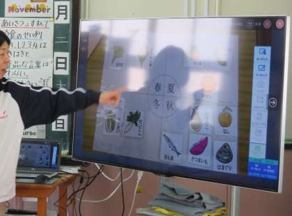 3年生の食育の授業で「旬」について学習しました。野菜や果物の旬を考える活動ではタケノコが難しかったようでした。