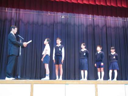 昨日は、児童朝会がありました。キックの表彰と夏休みの自由研究の表彰がありました。