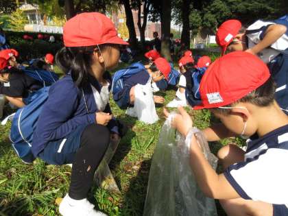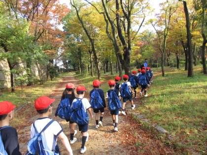 1年生は大阪城公園へ秋みつけにいきました。色とりどりの葉っぱやどんぐりをみつけることができました。
