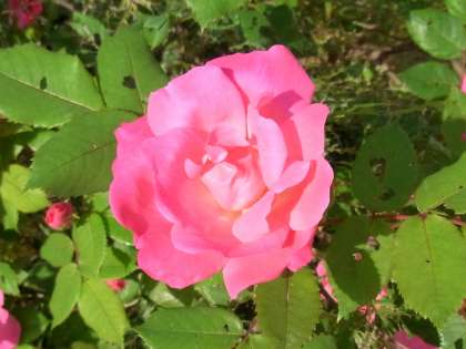 校庭の南側、学習園の近くにバラの花が咲いています。きれいな赤、その横にバラではありませんが、きれいなむらさき色の花がさいていました。学校は今、いろいろなところにきれいな花が咲いています。学校探検で花さがしはいかがでしょうか。
