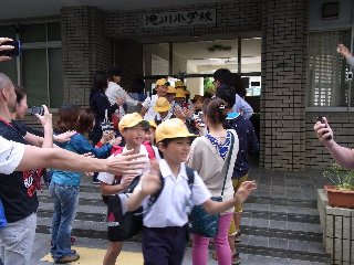 恒例になりました、保護者の皆様とのハイタッチに送られ、笑顔いっぱい出発しました。