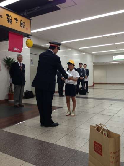 出発式で花束を贈呈し、記念品をいただきました!今年一番乗りに青空号を利用するということで、たくさんの方に見送られました!
