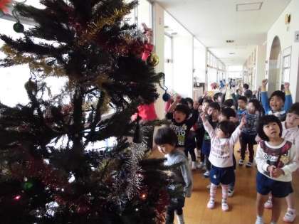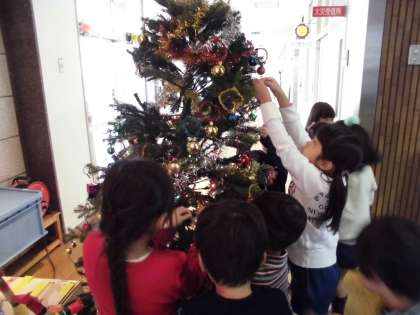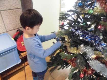 12月4日(月) 木に飾りをつけて、クリスマスツリーにしました。