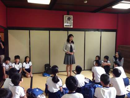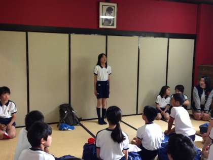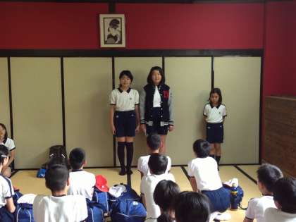 予定通りに鳥羽に到着しました。すぐに宿舎に到着し、開所式を行いました。開舎式では、滝川小学校の紹介をしました。旅館の方からも、伊勢のよさを存分にあじわってくださいと話してもらいました。CDデッキの調子が悪くアカペラで校歌を歌いましたが、大きな拍手をもらいました!