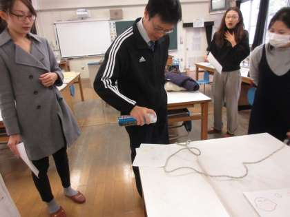校長先生の理科実験教室が開催されました。元気になる手袋では、酸性とアルカリ性を混ぜると膨らむ様子を楽しみながら実験されました。もう一つの実験ではペン1とペン2で描いた絵で実験をしました。アイロンやホットプレートであたためると・・・消えてしまいます。でも、冷やすと・・・・また出てきます。