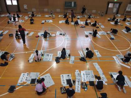 3.4年生のかきぞめ大会がありました。3年生は「生きる力」「元気な子」を書きました。最後まで一生懸命心をこめてかきあげていました。