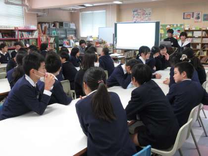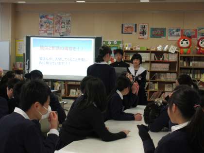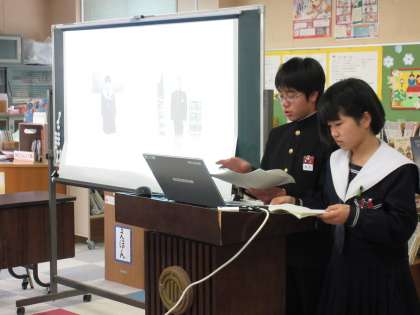 今日は、6年生のために北稜中学校の生徒会の先輩が本校へ学校紹介をするために来てくださいました。学習や行事、クラブ活動について説明してくださいました。質問コーナーでは、丁寧に一つひとつ答えてくださいました。最後の感想で6年生は、「いろいろ話を聞いて安心しました。入学が楽しみです。」と発表していました。