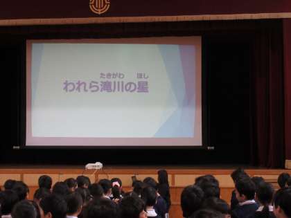 今日の音楽集会は「滝川の星」を歌いました。卒業をお祝いする会で歌います。