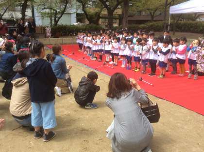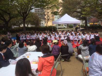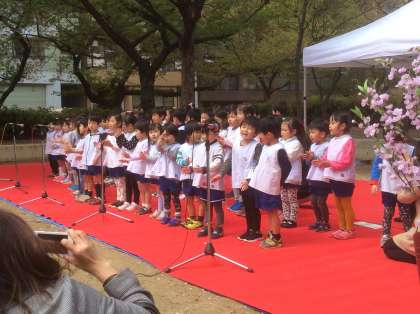 4月7日(土) 滝川地域の「さくらまつり」が、滝川公園で開催され、園児が歌で出演しました。3月に卒園した「ばら組」さんも、一緒に参加してくれました。