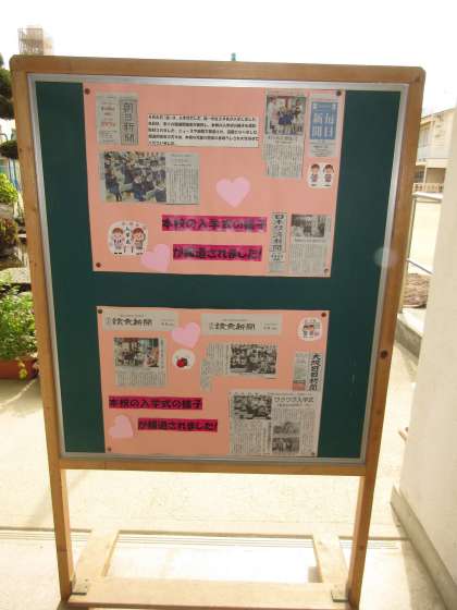 玄関に入学式の新聞を掲示しております。