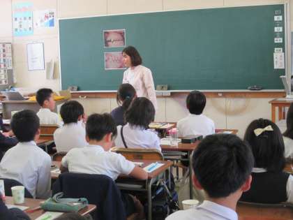 4月20日、6年生の「歯・口の健康教室」がありました。歯科衛生士さんに来ていただき、歯周病や歯・口に関する生活習慣についての話を聞きました。自分の生活をふりかえり、おやつの食べ方や食事のときのかむ回数、歯ぐきの様子を観察し、最後に前歯の歯垢染色と歯みがきをしました。ピンク色に染まった歯を見て歯垢のつき方の様子も確認でき、これからの生活習慣や歯みがきについて考えるよい機会になりました。