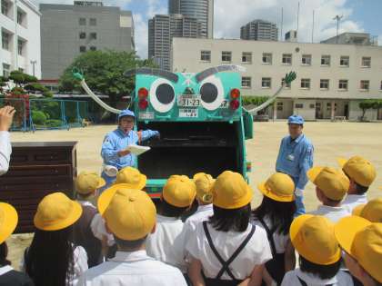 4年生は環境局の方々にお越しいただいてパッカー車やごみの分別について学習しました。また、金曜日には鶴見焼却工場に社会見学に行き、学習したいと思います。