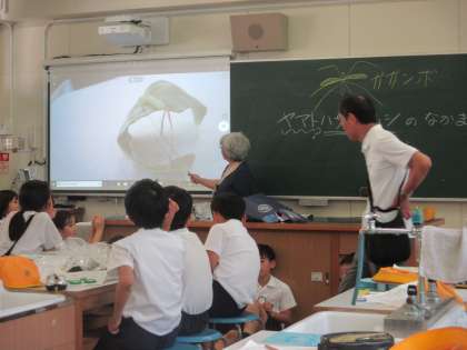 最後には理科室でグループ発表して詳しい方からいろいろな生き物の種類がいることを教わりました。