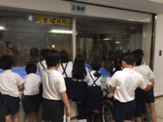 二号炉見学です。800度近くの温度で2時間近くかけてゴミを燃やすようです。