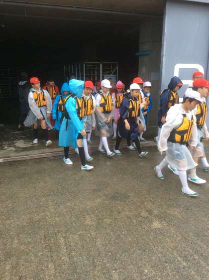 ライフジャケットを身に付けて、海の活動の開始です。白鳥号クルージング。