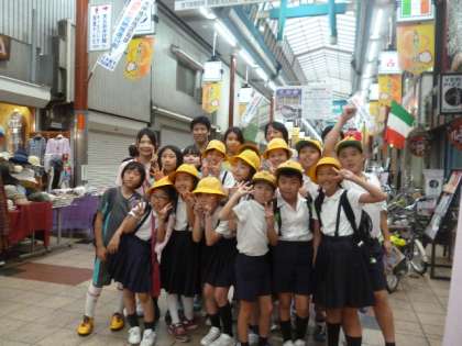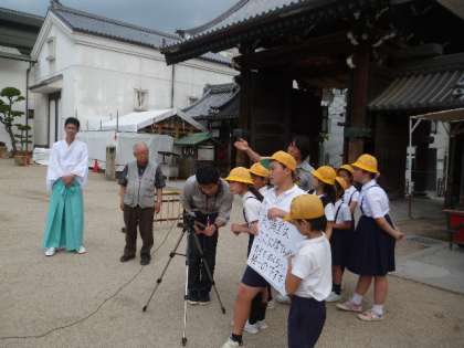 5年生は、今、来月に行われるNHK放送体験クラブのために、ビデオ撮影をしています。先日(6日(金))天満宮と天神橋筋商店街でビデオ撮影をしました。当日は、NHKの方からも3人の方々が来られ、カメラの撮影、ディレクターの仕事、音声の仕事などを教えてくださり、スムーズに撮影することができました。天満宮や天神橋筋商店街の方々には、お忙しい中取材活動にご協力いただきました。ありがとうございました。わずか5分程度の番組の制作のために、ものすごい時間と人の協力が必要だということを肌で感じ取ることができ、よい学習の機会を得たなと思っています。7月2日に、NHK大阪放送局で公開スタジオで番組作りがあり、この時制作した番組がNHKのEテレで放送される予定です。