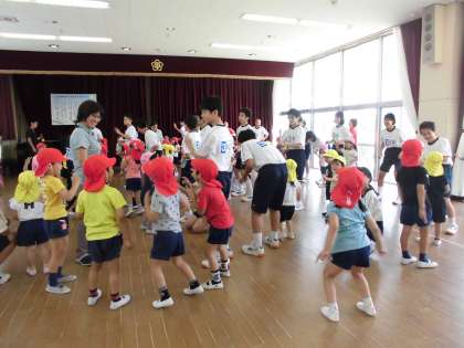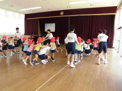 全員でホールで楽しく遊んだり、各部屋に分かれて一緒に活動したりしました。