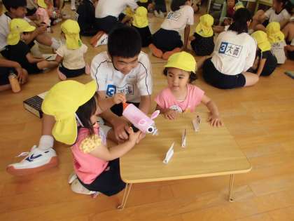 6月1日(金) 今年も、天満中学校の生徒さんたちが幼稚園に来てくれました。その名も「ペガサス隊」。