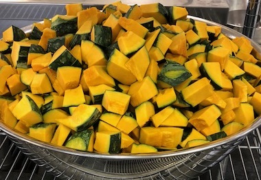 かぼちゃはこれから旬を迎えるカロテンやビタミンCが豊富な緑黄色野菜です。手作りのホワイトルウで煮込んだシチュー、おいしかったですね。