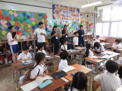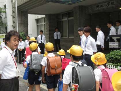 今日は大阪教育大学の学生12名が来校しています。教員の授業や教職員の児童とのかかわり方など参観し多くのことを学ぶ一日にしてほしいと思います。