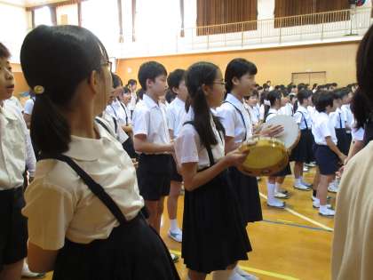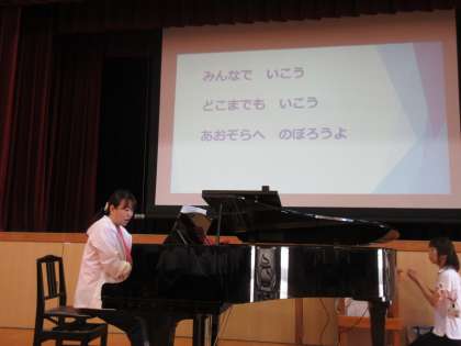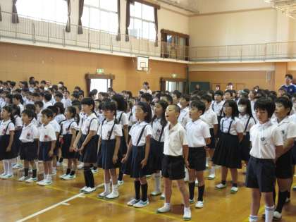 今日は月曜日の最後の週です。音楽集会がありました。とてもきれいな声を響かせてうたうことができました。6年生はタンバリンでリズムをとってくれました。
