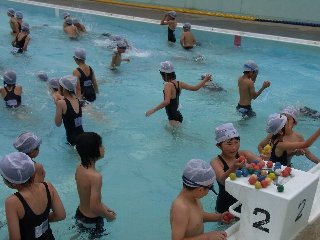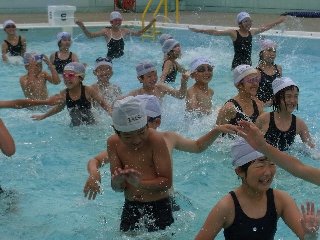 中学年のプール開き。シャワーも水慣れも石拾いも元気いっぱい。今年のプールもガッツで楽しみます。そんな熱気が伝わるプール開きでした。