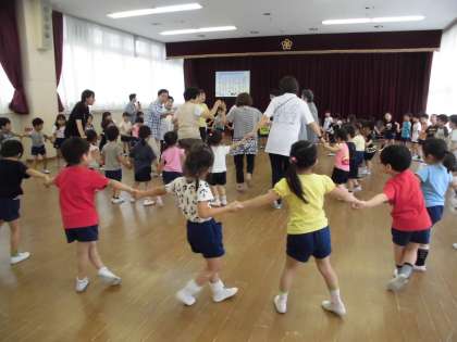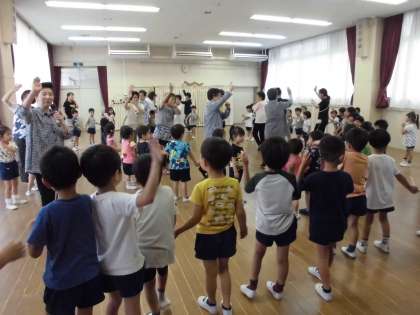 民踊友好会の方々が、子どもたちに踊りを教えてくださいました。