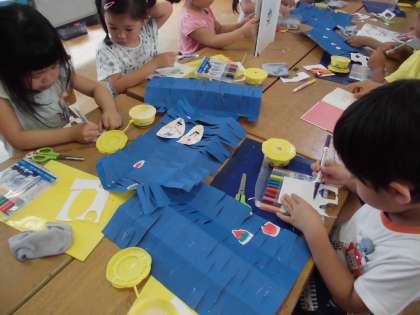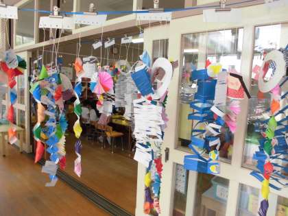 七夕の集いに向けて、七夕飾りを作って、保育室に飾りました。