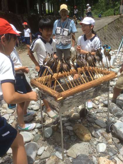 宿舎のご主人が、アマゴを塩焼きにしてくれました。一人一匹ずつです。