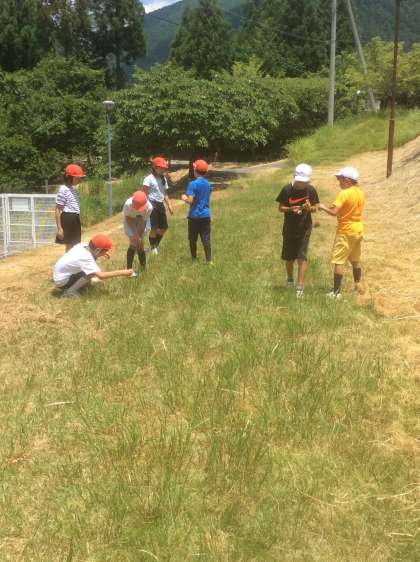 食後の自由時間。虫探し、斜面登り、昼寝……。