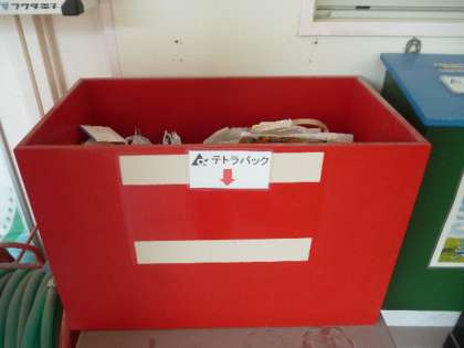 学校の玄関の横、管理作業員室の前に赤い箱が置いてあります。これは、テトラパックのマークのついた紙パックを集めるための箱です。厚生委員会では、テトラパック付きの紙パックを集めて、箱に入れて送っています。(ベルマークの対象となります。)ご家庭でもご協力ください。なお、テトラパックのついていない牛乳パック等は、回収の対象になっていません。昨年度までは、回収して、図書室の本の購入にあてていましたが、本年度はテトラパックのついていないものについては、回収していませんので、お気をつけください。