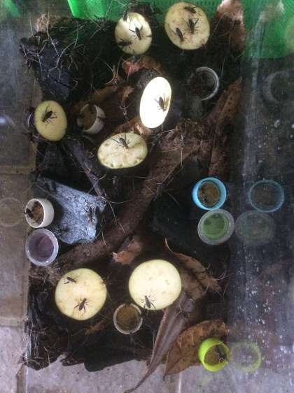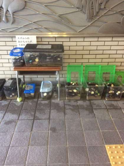 小学校の玄関で、鈴虫の「リーンリーン」という鳴き声を聞きました。飼育ケースの中の鈴虫は、まだ羽の生えていない幼虫がほとんどですが、何匹か、成虫になってくれたようです。