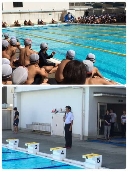 今日は堀川小学校で、水泳交歓会がありました。自分の力を発揮して泳ぐことができました。互いの小学校それぞれ応援していたことが素晴らしかったです。児童代表の言葉も堂々と話すことができました。