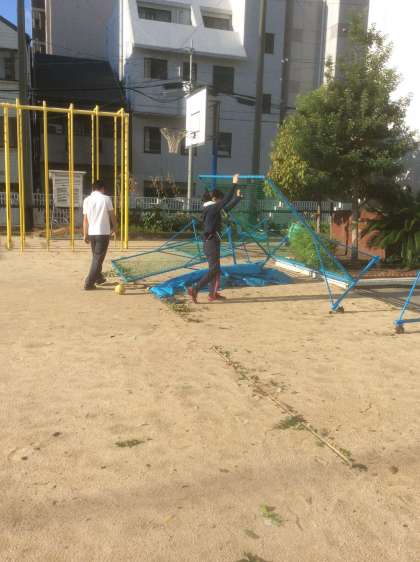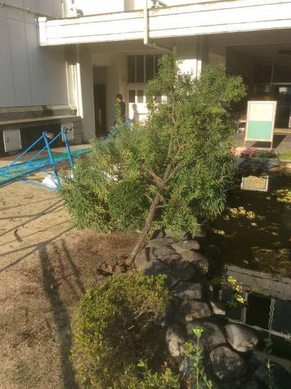 傾いたり折れたりした木もありますが、子どもの活動には支障がありません。