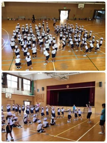 今日から運動会の練習が始まりました。1,2年生の練習風景です。