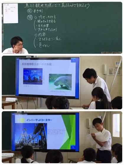 9日から6年生は修学旅行があります。修学旅行で行くところや歴史など各自事前に調べてパワーポイントにまとめたことをプレゼンしていました。