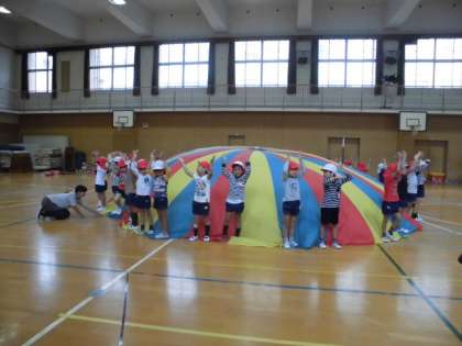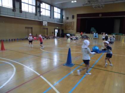 たんぽぽ組の演技、さくら組の競技、ばら組の演技