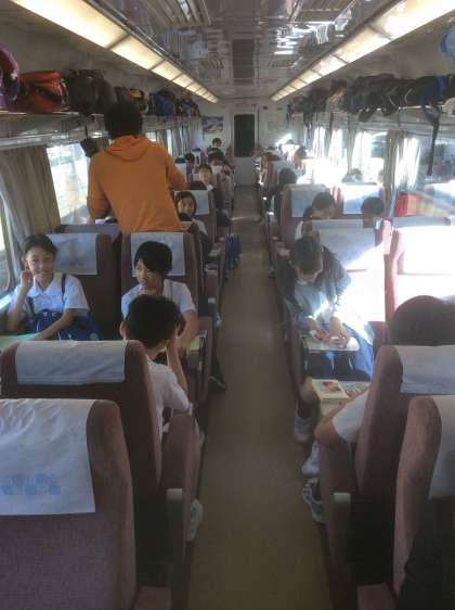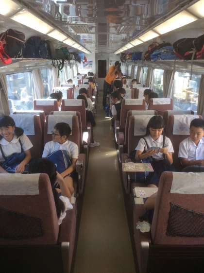 近鉄の臨時列車「青空号」に乗って、修学旅行の始まりです。