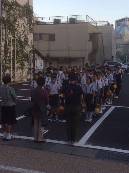 宿舎に着きました。まず、宿舎前の駐車場で開舎式です。